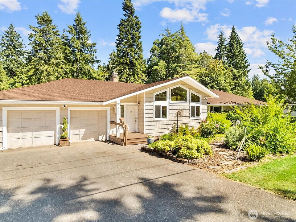 Set on acres of lush green lawn and towering evergreens, this light-filled home impresses from the moment you walk in. The open kitchen is a true chef’s domain: Viking appliances, a walk-in pantry, custom ash cabinetry, and a huge island w/ plenty of seating. Vaulted ceilings and a wall of windows flood the living space with natural light that dances on the wood floors. The primary suite is a retreat of its own with a fireplace, walk-in closet, and spa bath. Step out to the massive deck with hot tub, built-in stone pizza oven/fireplace, ideal for entertaining under the stars. With solar power, a large outbuilding, and a salmon-bearing creek meandering through your forest, this one has it all. Just minutes from town, yet worlds away.