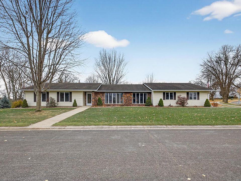 Location, location, location! Sprawling ranch style home on an acre lot in town, close to downtown, in the highly desirable Manor Woods subdivision. 3-bedroom, 3-bath home, plus a large main-floor office with separate access to the driveway. Spacious living areas and an updated kitchen with Cambria counters, stainless steel appliances, and ceramic tile. All three bedrooms are located on the main level with an enormous primary suite with a full bath, hardwood floors, and double closets. Private backyard with a beautiful patio to enjoy the wildlife and mature trees. Finished, oversized 2-car attached garage, multi-zoned heating, and plenty of storage in the lower level and space to expand. Pre-inspected! Handicap accessible!