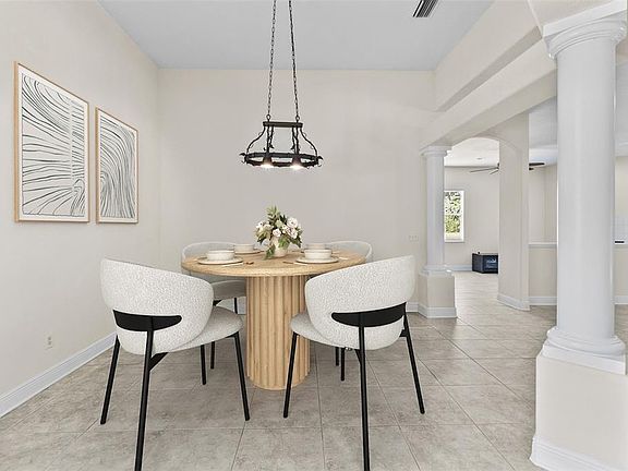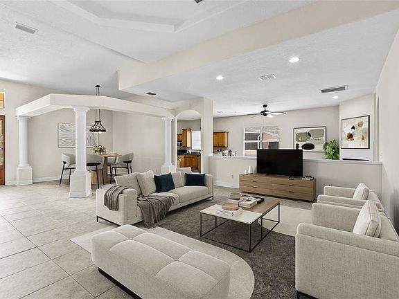 One or more photo(s) has been virtually staged. Welcome to your ideal family home in the highly sought-after NorthDale community! This spacious residence offers everything you need for comfort, convenience, and style. This home is located on a cul-de-sac and comes with no HOA or CDD fees. While the house does need some minor TLC, it offers a fantastic opportunity to customize it to your liking. Upon entering, you'll be greeted by a grand living area with soaring cathedral ceilings that create a sense of openness and light, setting the tone for the rest of the home. The expansive windows flood the room with natural light, highlighting the elegant architectural details. A cozy fireplace is nestled in a separate additional living room, offering a warm and inviting space perfect for relaxing or entertaining guests. The heart of the home is the huge eat-in kitchen, a true chef's delight. It features an abundance of cabinetry, providing plenty of storage for all your kitchen essentials, along with a spacious island that doubles as a prep area and a casual dining spot. Adjacent to the kitchen, you'll find a separate formal dining room, which is perfect for hosting family dinners, holiday celebrations, and special occasions, adding a touch of elegance to your gatherings. This home boasts five generously sized bedrooms, each offering ample closet space and large windows that ensure every room is bright and airy. The master suite is a private retreat, featuring an en-suite bathroom with dual sinks, a large soaking tub, a separate shower, and an additional closet, along with a spacious walk-in closet. This serene space is perfect for unwinding after a long day. In addition to the bedrooms, the home includes two versatile office spaces, providing the perfect environment for remote work, study, or hobbies. These rooms have the flexibility and can easily be transformed into a home gym, playroom, or guest quarters depending on your needs. Just off the office areas, you'll also find a separate workshop/storage space conveniently located next to the two-car garage, ideal for tools, equipment, or hobby projects. The outdoor space is just as impressive, with a large backyard and no rear neighbors, offering plenty of privacy. Whether you're hosting a summer barbecue or simply enjoying a quiet evening outdoors, this space is designed for relaxation. Don’t miss the chance to make this beautiful property your own!