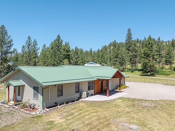 Welcome to a home designed with your comfort in mind, tucked into the quiet beauty of Jette Meadows, one of Polson’s most peaceful and private communities. This delightful 3-bedroom, 2-bath single-level home is nestled in a private, secure location just a short stroll from scenic community trails perfect for hiking, biking, and horseback riding. From the moment you arrive, this home wraps you in warmth. A dual gated entrance and circular driveway offer a welcoming first impression, leading to an oversized, insulated garage—perfect for your Montana toys. Step inside and fall in love with the thoughtful details throughout. A cozy Quadra-Fire wood stove surrounded by stacked slate rock, perfect for chilly evenings. Handsome "leathered" granite countertops in the kitchen that are both elegant and unique. Rich knotty alder doors that bring rustic charm to every room. Easy-care waterproof plank flooring that adds beauty and... practicality. Light-filled spaces with ceiling fans, updated bathrooms with dual vanities, jetted soaking tub, and a Ring camera system for peace of mind. The home’s two brand-new...mini-split heat pump & A/C units ensure year-round comfort while being energy efficient—an investment in both coziness and savings.