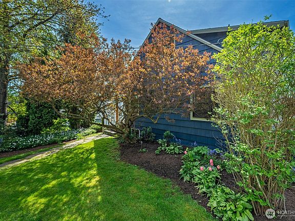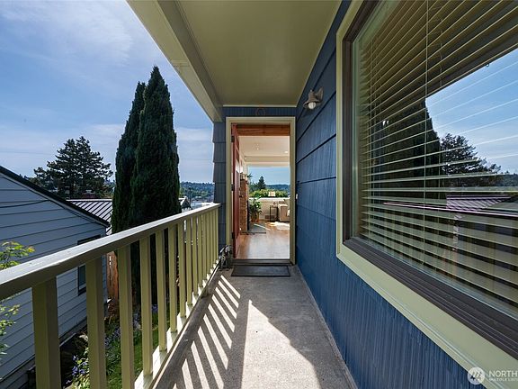 Nestled a short few blocks from vibrant Fremont, this delightful 4-bedroom, 2-bath home blends timeless charm with modern comfort. Perched on a street-to-street lot enjoy amazing views of the Olympic Mts and stunning sunsets. Abundant natural light thru versatile living spaces, the main floor boasts an open great rm with updated kitchen, hrdwd floors, fireplace, picture windows and french doors to a large view deck. 2 bdrms and a bath on this level. Upstairs to 2 spacious bedrooms with vaulted ceilings and a bath. The expansive lower level includes a fam rm w built in bookcases, laundry, ample storage and doors opening to a flagstone patio, backyard and terraced garden area. Steps to award winning dining, breweries, parks, and schools!