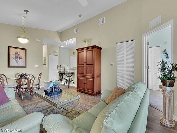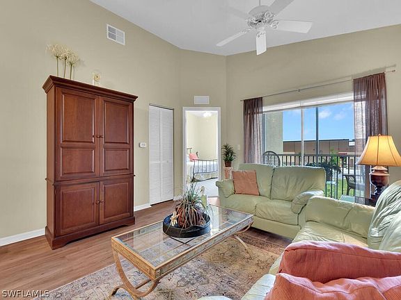 Turnkey 2nd floor condo is immaculate with nothing to do except pack your bags and move in! This stunning 3 bedroom 2 bath unit is located in the beautiful, quiet Bellasol community. Volume cathedral ceilings, bright & airy featuring a large master walk-in closet, open kitchen with breakfast bar/ eating area, upgraded vinyl plank flooring in the main areas and carpet in the bedrooms. Original owner utilizing this condo just 4 months each year kept this home pristine. Enjoy the peaceful, resort-style, gated community with fantastic amenities likened lush landscaping, resort-style Lakeview clubhouse with pool, spa, and fitness center, lush tropical landscaping, a sparkling 26 acre lake. within 15 minutes of Fort Myers Beach and close to Sanibel beach, and Captiva. Quick drive to SW Florida International Airport restaurants, shopping, entertainment, medical facilities and much more. Don't wait This condo is priced to sell!!!