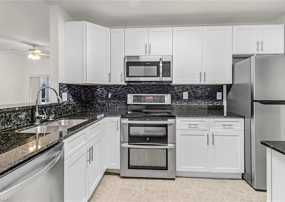 You’ll love this first floor condo located in Bellasol in Fort Myers! This 3 bedroom, 2 full bath unit features updated electric, new showers/sinks/countertops in bathrooms, NO carpet throughout and plenty of natural lighting! The living area boasts direct access to the lanai and patio, and flows seamlessly into the dining area and kitchen. The kitchen provides white shaker cabinets, a suite of stainless steel appliances, granite countertops, custom backsplash, as well as ample counter and storage space. The owner’s suite provides its own private ensuite complete with a walk in shower. Two nicely sized bedrooms and a full bathroom complete this unit! Bellasol offers a clubhouse, community pool and spa, and exercise room! Located just minutes to a variety of shopping/dining options, about 15 minutes to RSW and in close proximity to some of SWFL’s most breathtaking beaches, this home offers a little piece of paradise for everyone!