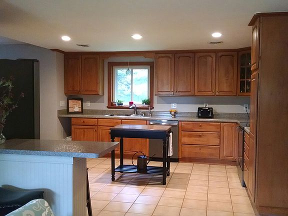 Enjoy one level living in this stunning Ranch with pottery barn decor. The beautiful kitchen offers plenty of prep, storage space, and opens up to the spacious dining room. The family room with cathedral ceilings is a great space to unwind or head to the back deck and take in the tranquil views. The spacious front porch is a relaxing place to put your feet up and read a book. Some of the updates include; new septic system, kitchen, bathroom, flooring, fresh paint and new siding. There are also three outdoor sheds, and two heated storage rooms inside garage which are added bonuses to this home.