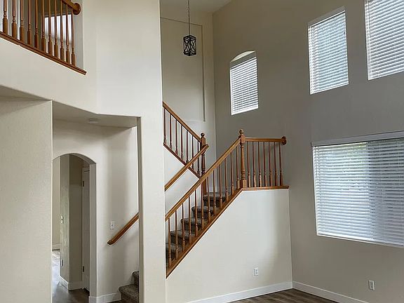 Great location! Beautiful Mediterranean-style home in the well-sought-out Laguna West neighborhood. The house has four bedrooms, three full baths, one bedroom and bath downstairs, a three-car garage, with an extended driveway, a large in-ground pool, a wood-burning fireplace, a vaulted ceiling, and 1869 square feet nestled in quite a cultural sac. This lovely home has new vinyl wood plank flooring, updated bathrooms, window treatment, light fixtures, central A/C, and heating. Inside the laundry room, plenty of space for your washer and dryer, and space for your refrigerator. Restaurants and a bowling alley are within walking distance, and there is a short walk to the nearby lake. The home is near Hwy 5, with childcare facilities and a large park nearby. Owner pays for water. Renter is responsible for gas and electric and landscaping. No smoking allowed. Up to two pets total allowed. Rent and security deposit required at signing.