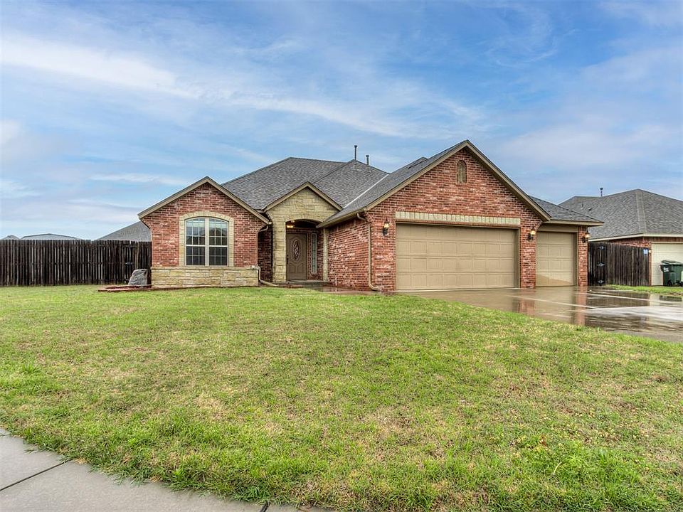 Welcome to this lovely home nestled in Yukon, OK! Situated on a nice corner lot, this charming abode boasts a 3-car garage and a convenient office space at the front of the home—perfect for remote work or study sessions. Inside you’ll discover a cozy living room adorned with a beautiful stone fireplace, creating the ideal setting for relaxing evenings. The open-concept floor plan seamlessly connects the living area to the kitchen, where you'll find a spacious island with bar seating, granite countertops, and a pantry complete with ample shelving. The sizable primary bedroom offers style and convenience with its tray ceiling and en suite bathroom featuring granite countertops, a luxurious whirlpool soaking tub, a modern standing shower, and a massive walk-in closet equipped with built-in shelving and drawers. Outside, the backyard beckons with ample space for backyard fun, a concrete patio area and a convenient storage shed—perfect for outdoor entertaining or simply enjoying the sunshine. Plus, the location couldn't be more convenient, with just an 8-minute drive to the John Kilpatrick Turnpike your travel time will be kept to a minimum, and just 8 minutes to Lake Overholser, where you can enjoy a variety of fun activities like kayaking and paddleboarding. Don't miss out on this fantastic opportunity—schedule your showing today!