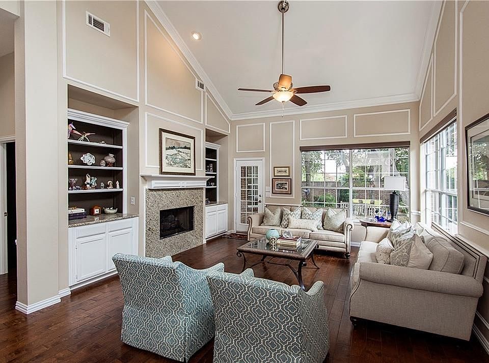 Nestled at the end of a drive, adjacent to Addison walking trail with access through a side gate in the beautifully landscaped patio, this home is one of a kind! Downstairs master bedroom enlarged to fit two king beds or a spacious sitting area plus two walk in closets. Kitchen with breakfast bar,gas cooktop, island and room to eat open to extended living room with wall of windows. All look out to the park-like patio. Solid hardwood floors up and down stairs; 2nd living area upstairs.