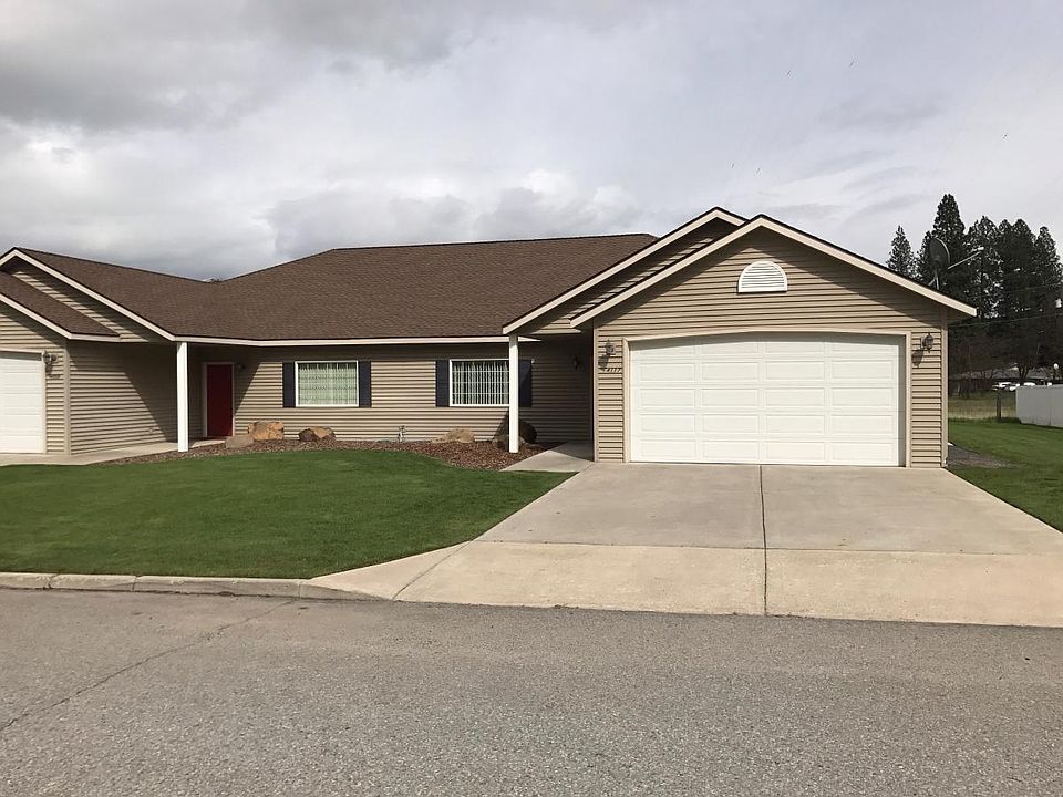 Beautiful and sparkling clean, recently updated single level duplex. Very spacious 1428sq ft, with open floor plan and new wood laminate floor and high end stainless steel appliances. All on one floor! It is energy-efficient with three bedrooms and two baths. The master bedroom has a large walk-in closet and attached bath with dual sinks. The kitchen is spacious and has a beautiful wood laminate floor with stainless steel appliances and and an abundance of cabinets. The range has a convection oven and five burner top. The refrigerator is three doors, 26 ft. with icemaker. There is a brand-new dishwasher, built-in microwave oven above the stove and also a garbage disposal. Other amenities include washer and dryer hook up, covered patio, forced air furnace, central air conditioning and newly refurbished and beautifully finished double car garage which is insulated, drywalled and painted with a new epoxy floor and storage shelves lining the walls. There is also a separate storage room in the garage. This duplex is located in Spokane Valley in a beautiful residential neighborhood just one minute from the Chester store. All your lawn care and maintenance included. Maintenance free living!