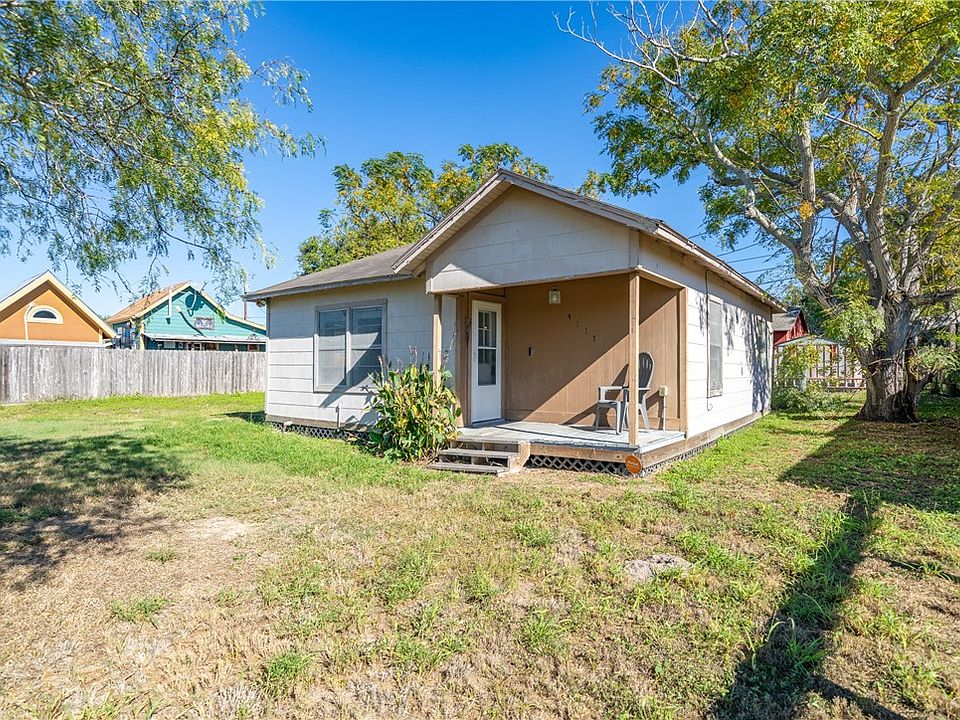 Charming Coastal Home in Flour Bluff ISD! Precious 1-bedroom, 1-bath home featuring an open-concept layout with a comfortable living room and dining area. Located in the highly desirable Flour Bluff School District, this property sits on a large, tree-shaded lot offering plenty of space for cars, boats, recreational vehicles and more! Just a short walk to the Marina on Laguna Shores, you’ll enjoy easy access to the Bay and North Padre Island — great for fishing, boating, and coastal living! Inside, durable vinyl plank flooring makes maintenance a breeze. A spacious storage building in the backyard provides plenty of room for tools and equipment. Enjoy your morning coffee while feeling the coastal breeze in this charming home with room to grow and potential as an income-producing property. With a little TLC and your personal touch, this one-of-a-kind gem can shine! Don’t miss your chance to live the beach life without the high cost — this one won’t last long!