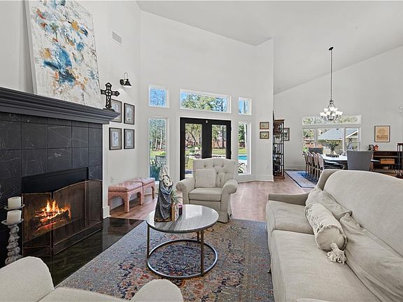 The sunny main floor has two spacious bedrooms, one of which is currently used as an office and guest suite. A beautifully renovated, kitchen and keeping room are the heart of the home, offering modern finishes and a large combo pantry/laundry area. The formal great room and dining room feature soaring two-story cathedral ceilings and walls of windows, creating an open and inviting atmosphere expansive enough to host large parties. Every room of the home offers stunning views of the expansive yet private backyard framed by new Andersen windows. The large primary suite is an oasis, featuring a private fireplace, a massive walk-in shower, and a spacious closet with built-ins. Upstairs, you’ll find 2 Jack and Jill bathrooms that perfectly serve the other 4 bedrooms as well as 2 walk in attics.
