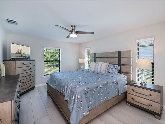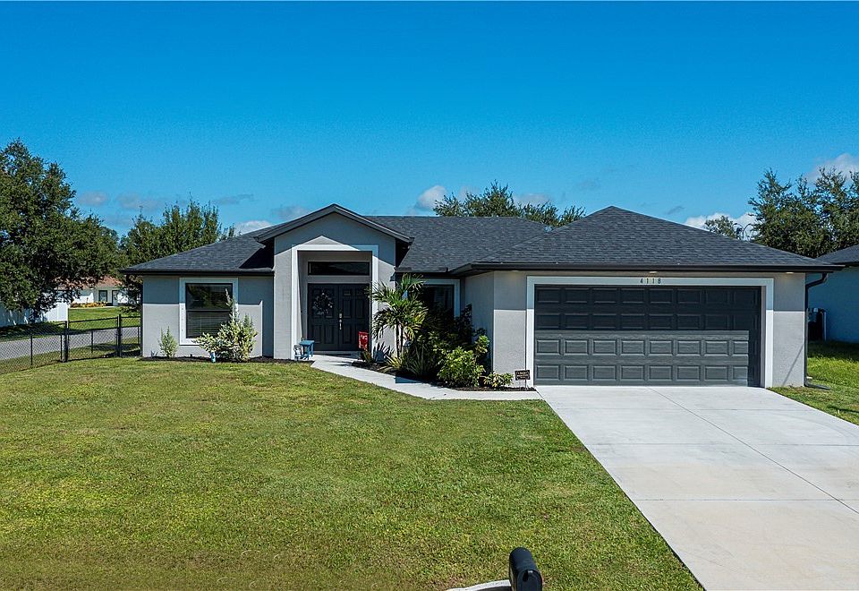 Built in 2023, this beautifully designed 3-bedroom, 2-bath home offers modern living on an oversized FULLY FENCED, CORNER lot!! Step inside to appreciate the meticulously maintained open layout featuring granite countertops, vaulted ceilings, wood-look tile flooring throughout and custom window treatments that accentuate the abundance of natural light. The primary suite has a walk-in shower, dual sinks, private lavatory and walk-in closet. Outside there is a large under-truss lanai to enjoy the spacious fenced yard. NO FLOOD INSURANCE being required and hurricane shutters give peace of mind, while the convenient location allows the owners to enjoy close shopping and restaurants! Convenient to the airport, beaches, shopping and so much more!! Schedule your private showing to truly appreciate all this home has to offer.