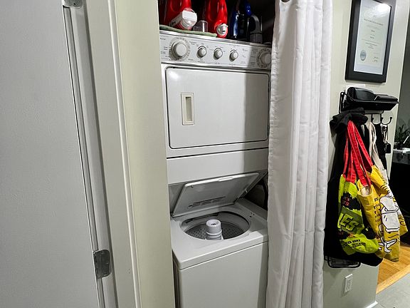 1 bedroom, 1 bath apartment on a lower floor with garden view 645 sq. ft. with a large balcony and big windows. South facing towards a park making it quiet. Kitchen comes with a stainless fridge, stove, oven, dishwasher and microwave. The in-suite stacked washer/dryer is just off the entry. Two large closets and great overall storage. Comes with 1 secured underground parking stall, visitor parking, and one storage locker. There is also EV parking/charging available in the parking garage. Access to bike room, amenity room with pool table, party room, gym, hot tub, sauna and steam room, and common green space areas. Across the street from Gilmore Skytrain Station. 2 min drive to Brentwood Mall. 3 min drive to Highway 1 via 1st Ave. Walking distance to the major grocery stores, liquor store and many restaurants. Included: Water Not included: Move-in fee, electricity, internet No smoking/drugs/vaping No Airbnb, sublet or short term rental 1 year lease required Security deposit is half a month rent Pets are negotiable, some restrictions may apply and pet deposit will be required if applicable Tenant insurance, credit check, employment and rental history verification required Renter is responsible for move in fee, hydro and internet. Water, utilities, storage locker and parking (inc. visitor parkinge) are included. There is also access to bike storage, amenity room with pool table, party room, gym, hot tub, sauna and steam room, and common green space areas. No smoking, vaping, drugs No Airbnb, sublet or short term rental Must abide by strata bylaws 1 year lease required