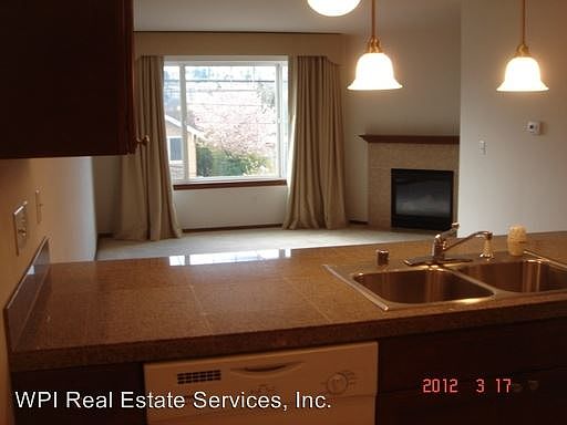 Townhome duplex. Each side is 2 bed 1.5 bath. 3 floors, including ground floor. 2 small car tandem parking garage. Large storage under stairs in garage. 3rd parking in driveway. 2nd floor has kitchen and living room and bath. Kitchen features: granite counters [with eating bar], double stainless steel sinks and microwave and tile floors. Propane gas fireplace. Electric forced air furnace. Beige carpets in living room and bedrooms. Full size stacked washer/dryer. 3rd floor has 2 bedrooms and full bath Approximate room sizes: Living room: 21 feet by 12 feet. Master bedroom 15 feet by 12 feet with 8 feet by 5 feet walk-in closet. 2nd bedroom about 11 feet by 9 feet with 3 feet by 2.5 feet closet.