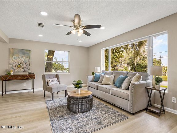 BACK ON THE MARKET! BUYER'S FINANCING FELL THROUGH. Tastefully renovated concrete block home in Fort Caroline! From the views of the St John's River from your front lawn to the accessibility of the public amenitities that include boat launch, pool and tennis courts located across the street, you couldn't have asked for a better location! Home features custom kitchen with white shaker cabinets, granite counters, mosaic tile backsplash & Brand-New stainless-steel appliances. New Roof and Screened in porch in 2017, AC replaced in 2014, Brand New Garage door motors, Updated bathrooms, Freshly painted interior and exterior, New electrical and plumbing fixtures throughout, beautifully refinished original hardwood floors on the upper level and New lvp floors on the lower level and much more.
