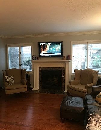 In-ground poolBack courtyard overlooks woodsFireplace with gas logsRemodeled kitchenLarge two-car attached garageMarble herringbone backsplashAmple storage