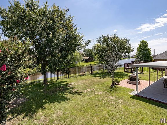 Impeccable Custom Home with picturesque views and mature trees! This exquisitely maintained waterfront property offers many tasteful updates and add-ons. Beginning with outdoors, you will enjoy (all new) 50 x 20 patio extension with a 36 x14 high-end vinyl patio cover, black aluminum fenced yard with gates, professional landscaping with underground drainage system, concrete fountain, security cameras, High E windows with lifetime warranty, garage door and myQ system , custom fiberglass front door, shutters, custom faux wood painting, and new roof with high profile capping. Inside offers seamlessly transitions to spacious living room, formal dining, kitchen and breakfast area offering three new picture windows that provide ample natural light. Wood flooring added throughout entire home with updated tile in bathrooms. Updated lighting. Whole house painted in 2020. Air purifying system installed in 2024. Garage storage renovated to HVAC office area. Lots of other updates on attached list. Located in a quiet, established filing with no through traffic. Sidewalks, parks, and ponds make it a perfect family-friendly home! No flood insurance required!