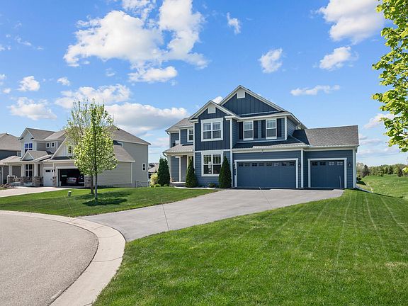 Welcome to this exquisite home, offering thoughtfully designed living space, nestled in a prime Chaska location. This spacious residence features 5 bedrooms, 4 bathrooms, and a 3-car garage, perfect for modern family living. Designer kitchen with a barrel vault ceiling, raised breakfast bar, double oven, and a walk-in pantry. Open-concept family room with a cantilevered gas fireplace and 2-story ceilings, creating a grand yet inviting atmosphere. Dining room and flexible den/sunroom for versatile living options. Stop & Drop organizational station with built-in mail cubbies, message board, and pet/recycling area. Primary suite with a spacious bedroom, walk-in closet, and a well-appointed ensuite bathroom.
