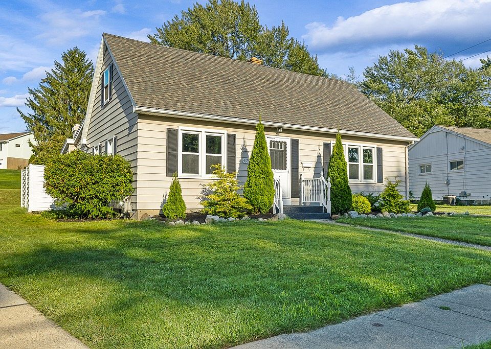 Adorable Cape Cod! New flooring throughout the first floor, fresh paint, a New Kitchen remodel with brand new appliances! Both bathrooms have been renovated and offer new flooring, vanity and toilets. Master bedroom is on the first floor with first floor laundry as well. 2 nice size bedrooms on second floor and a half bath. A 25x12 family room has a wood burning fireplace and surrounded by windows with a walk out to the patio.