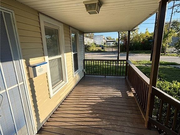 Colonial home has many updates, fresh paint and flooring, front porch, and is situated on a corner lot.