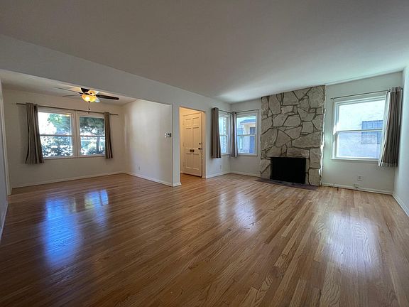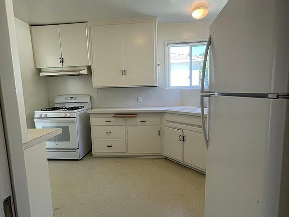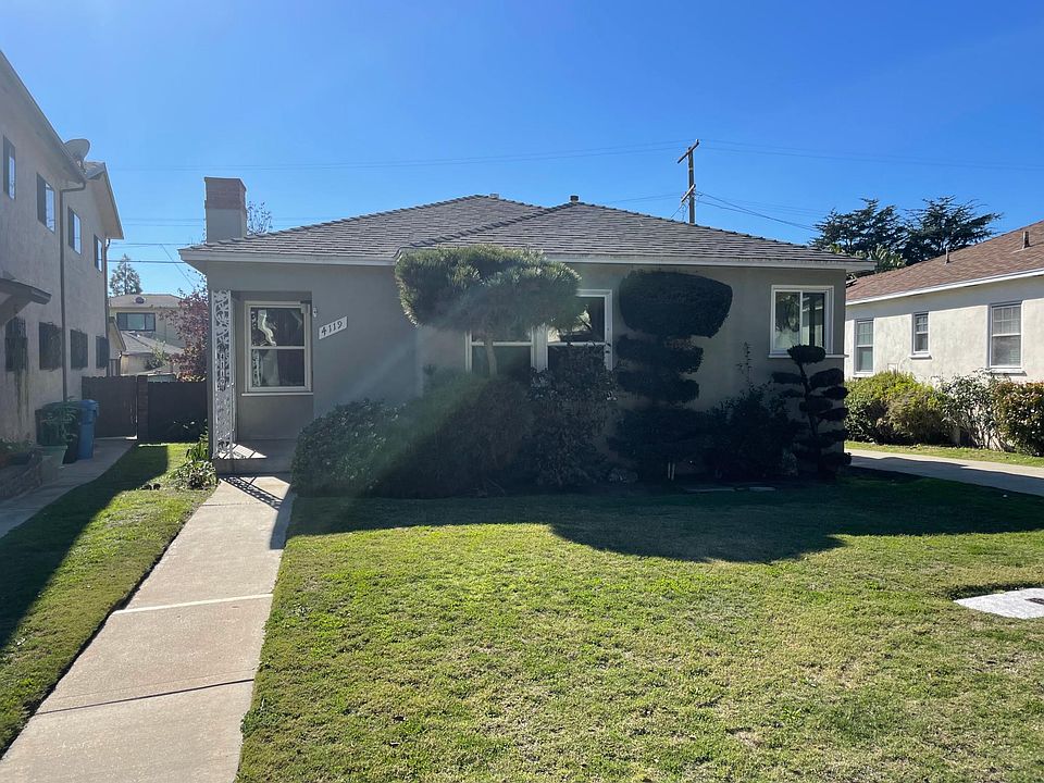 A cozy traditional Mid-Century home in the heart of Culver City. 3 bed + 1 bath, 1191 sqft., with hardwood floors, carpet in one bedroom, and new congoleum flooring in kitchen & laundry. The kitchen is an L-Shape with a large shelving unit for pantry use; gas range & new stove-hood; fridge is provided as a convenience. The kitchen sink sits at the corner with a corner window and shelf, perfect for any plant lover. A lovely picture window in the front of the house brings ample natural light into the living areas. A stone-front decorative fireplace creates a great focal point in the living room. All bedrooms are off of a main hallway, with the shared 4 piece bathroom with separate tub / shower, sink and toilet is centered between them. The first bedroom looks out to the patio and features a private entrance, nicely sized closet, ceiling fan and window coverings (provided as a convenience and not serviced by the landlord) The second bedroom faces the side of the house, with mirrored closet doors amplifying its natural light, and ceiling fan. The third bedroom sits at the rear of the house, with a step down. This room has carpet, and a generous closet, and looks out to the patio as well. Off the hallway is a sizable double sided closet allowing for ample additional storage space. Behind the house is a large grassy backyard, with a beautiful Liquid Amber tree in one corner. The yard is bordered by the two-car garage, which has a motorized garage door. The house comes with new washer & dryer, a basic fridge (all three appliances are not warranties by the landlord, but laundry appliances carry manufactures limited warranty), and optional window AC units. The house has multiple double-paned windows. There is a single wall heater in the hall / living areas. Owner pays for gardener. Tenant pays all utilities. Pet deposit additional; some size & breed restrictions.