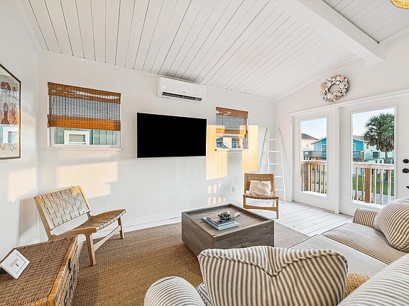 Coastal charm meets effortless living in this fully furnished Sea Isle retreat. Just steps from the sand, this light-filled cottage offers vaulted ceilings, whitewashed floors, and natural textures that bring the outdoors in. The open-concept living/dining flows seamlessly, with 2 bedrooms, 2 bath, and curated design that feels turnkey - whether as a personal getaway or ready-to-rent investment. A versatile flex space downstairs extends the living potential for guests, hobbies, or storage. Enjoy evenings on the porch, cast a line at the marina, or launch your boat for a day of fishing. Sea Isle amenities include beach access, marina, pool, and tennis. Priced under $400k, this gem offers the rare opportunity to own a slice of Galveston with ease, beauty, and income potential.