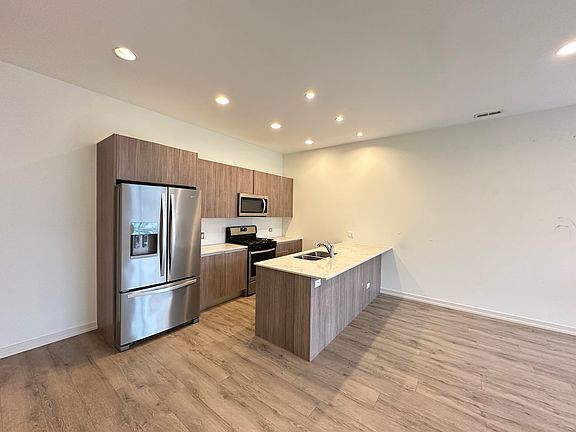 We now offer virtual video tours of all of our apartments! Schedule a virtual tour and rent this apartment from the comfort and safety of your home! Apply online! Hip two bedroom, two bathroom in Portage Park features modern kitchen with modern cabinets, quartz countertops, breakfast bar, stainless steel appliances, dishwasher, microwave, open large combination living and dining rooms, tall ceilings, hardwood floors, spacious carpeted bedrooms, great closets, modern bathrooms, balcony, central heat and air, in unit laundry, one outdoor parking spot included, and pets are welcome! Won't Last Long!