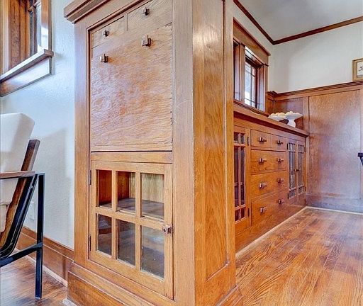 But wait, there's more! The original hardwood floors and built-in cabinetry are perfectly preserved, bringing a touch of old-school cool to the place.
