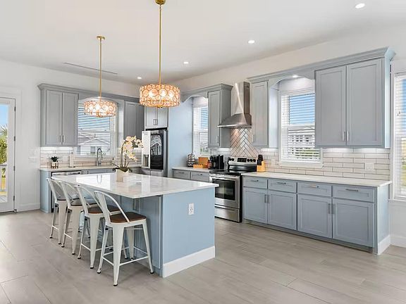 Stunning 4-bedroom, 4-bath custom-built beachside home in the sought-after Pointe West community. Designed for coastal living, this residence boasts a spacious, open-concept layout featuring a gourmet kitchen, an oversized island, and a bar area that seamlessly transitions into the dining and living spaces. High-end finishes include composite TREX decking and premium Pella windows and doors. Multiple covered balconies offer breathtaking views of the Gulf and bay, perfect for savoring morning coffee or evening sunsets. Upstairs, the primary suite provides a luxurious spa-style bath, soaking tub, and double vanities, along with additional bedrooms, including a custom bunk room. Outdoor living shines with a large, covered ground-level entertaining area, a fenced backyard, and a private outdoor shower. Just steps from the beach and within walking distance of the Pointe West Beach Club, this home combines style, comfort, and an ideal location for a true coastal retreat.