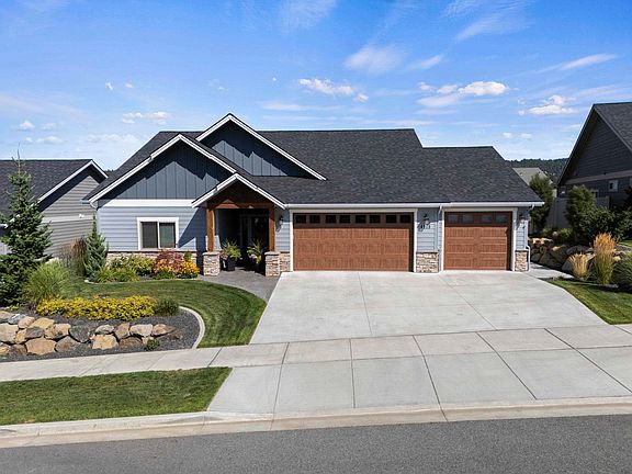 Single-level living in the desirable Twisted Willows neighborhood! This 3 bed, 2 bath home features zero-step entry & an oversized 3-car garage. The inviting great room boasts rich wood floors & a stunning floor-to-ceiling stone-accented gas fireplace framed by custom bookcases. The open kitchen is designed for entertaining with a large island, gas range, plenty of cabinet space & 8ft solid wood doors throughout the home. The primary suite offers a walk-in closet, full tiled walk-in shower & direct access to the patio. Step outside to a spacious covered patio & enjoy peaceful Glenrose views, or unwind in the fully fenced backyard complete with a putting green. Two additional bedrooms provide flexible living options for family, guests, or office space. Energy-efficient tankless hot water, no HOA, & thoughtful finishes make this home comfortable & convenient. A perfect blend of quality, function, & style in a quiet Spokane location!
