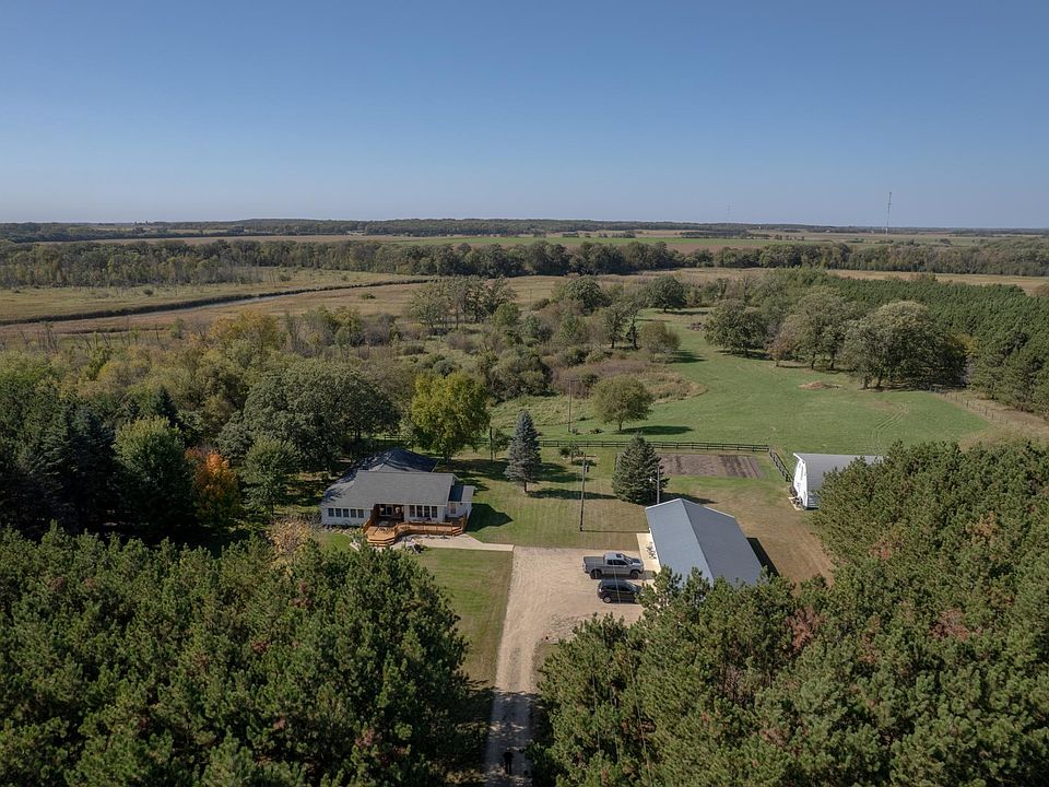 Discover the perfect blend of privacy, space and opportunity with this 3-bedroom 3-bath country home set on 23 beautiful acres. Surrounded by mature trees and wildlife, this property offers a peaceful retreat with endless possibilities for hobby farming, horses, gardening or simply enjoying the outdoors. Inside the main level features 3 bedrooms, 2 baths, an office space with scenic views, a convenient main floor laundry and a bright, welcoming kitchen and living room. The finished lower level expands your living space with a large family room, a bathroom and a versatile room that could be a guest room with the addition of an egress window. A dedicated workshop is also in the lower level. Outside, the property is designed for both work and play. A 4-stall garage provides ample parking with one stall customized as a workshop. The charming barn is ready for chickens, horses, or other animals, while the land itself offers a picturesque mix of woods, fenced pasture and a touch of low land. This is a rare opportunity to make your country lifestyle vision a reality. Once you drive in, you will know this is the home you have been waiting for!
