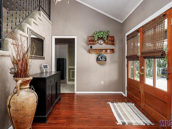 Perfect home for a large or growing family! 4 Bed, 2 bath, 2,633 living sq ft home located on more than half an acre. There is an additional unfinished 750 sq ft upstairs with plumbing rough-ins. Home features two family rooms! The living room is equipped with a gas fireplace, and the den is equipped with a wood burning fireplace. Kitchen features tiled countertops, plenty of cabinets for storage, and two pantries. The primary bedroom features dual closets. The primary bathroom is equipped with a closet and a shower and tub combo. Entertain outside on the spacious covered patio or hang out in the adorable red barn. The barn also has an upstairs great for storage! Large concrete slab leading up to the entrance of the barn perfect for a basketball court or whatever your heart desires. Conveniently located near Airline Highway which features restaurants, Walmart, bowling alley, movie theater, shopping centers, and much more! Extra laminate flooring will remain and can be used to replace the carpet on the stairs or in the primary bedroom. Home contains LOTS of upgrades with all new central air, hot water heater, dishwasher and Modad. Roof is only 6 years old. Fridge negotiable. Washer and dryer to remain!. No flood insurance required! 100% Financing is Available! High and Dry, did not flood in 2016.