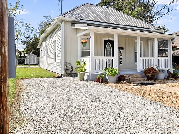 Welcome to your new home! This adorable 2-bedroom, 1-bath bungalow is nestled on a peaceful street in the Ozarks. This delightful residence retains its original charm, featuring beautifully refinished wood floors and a spacious dining room perfect for gatherings. The recently remodeled kitchen shines with custom hickory cabinets and all-new appliances, including a washer and dryer. The stylish bathroom has also been updated, complete with built-in shelves and a perfectly sized vanity for your convenience. Relax on the cozy covered front porch, which welcomes you home each day. The large, fenced backyard is ideal for pets, with gravel paths to keep their paws clean and plenty of grassy space for play. You'll also find a gravel parking spot for your RV and lovely landscaping that enhances the curb appeal. With a newer metal roof installed in 2020, new guttering, and all-electric amenities, this home combines charm, comfort, and practicality.