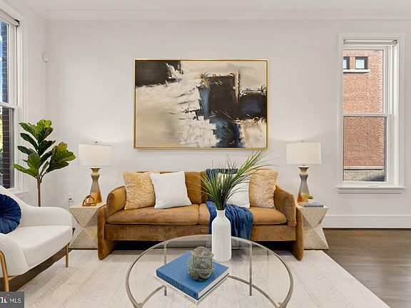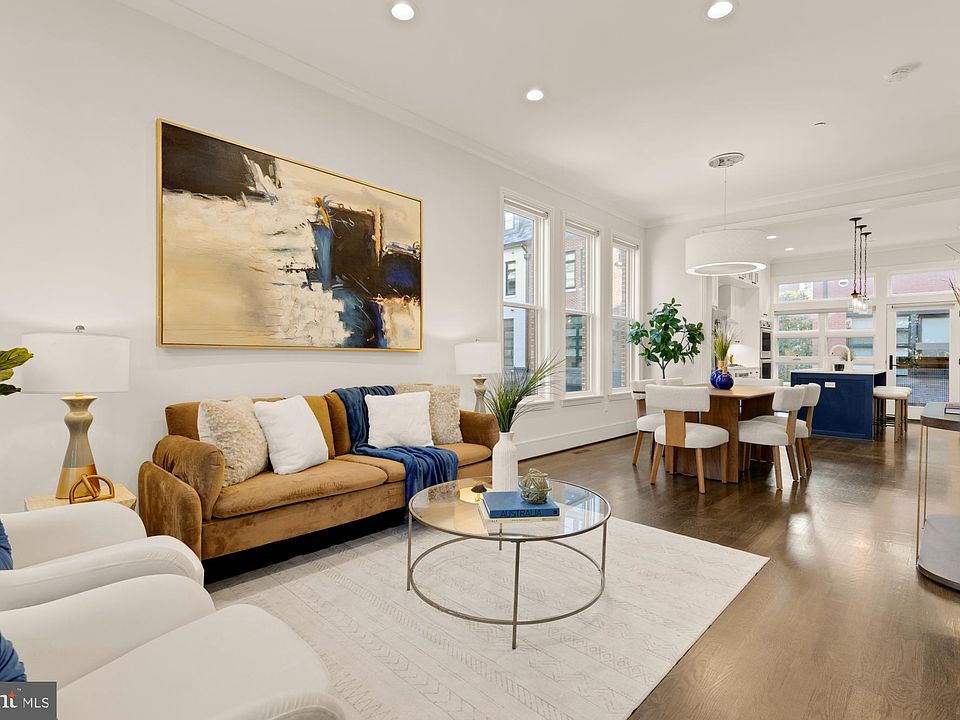 Designer End-Unit Townhome with Rooftop Capitol Views Welcome to 412 13th Street SE, a rare Buchanan Park residence blending modern tastes, timeless detail, and unbeatable proximity to Eastern Market and Barracks Row. Constructed in 2017 by McCullough Construction, LLC, with design excellence by Maurice Walters Architect Inc., this residence harmoniously combines quality materials and finishes with contemporary luxuries across four levels. Step inside to discover nearly 10-foot ceilings, oak hardwood floors, and refined crown molding, creating an atmosphere of timeless elegance. Oversized JELD-WEN wood windows allow natural light to pour into every corner and include motorized shades. The main level boasts an open-concept layout including a bright living area with a bonus bank of windows and space for a large dining room table and a powder room. This inviting space flows into a gourmet chef’s kitchen, equipped with Bosch & Thermador appliances, quartz countertops, and bespoke cabinetry, including a pantry. A generous island with seating and floor-to-ceiling windows with a Juliet balcony make this space ideal for both day-to-day living and entertaining. The upper floors feature 3 bedrooms with en-suite baths, adorned with Waterworks fixtures and marble finishes, ample closets complete with custom designed systems. A flexible den on the lower level and a full bath offers space that can adapt to a guest suite, media area, home office, or fitness room. Additional features include a spacious garage with ample storage. The home's expansive roof terrace is a charming tree-top retreat offering sweeping westward views of the U.S. Capitol, Library of Congress, and Watkins school’s sports fields. With a natural gas hookup and hose bib, this outdoor space is perfectly equipped for grilling, gardening, or enjoying a serene evening under the stars. The home's brick exterior, wrought iron-fenced yard, and landscaped grounds reflect the unified elegance of the Buchanan Park community. Ideally located just blocks from Safeway, Eastern Market, Lincoln Park, Trader Joe’s, The Roost, and the vibrant Barracks Row restaurant corridor, with the Potomac Ave and Eastern Market Metro stations mere minutes away — this is Capitol Hill living at its finest. Experience unparalleled luxury, convenience, and architectural excellence in this remarkable residence.