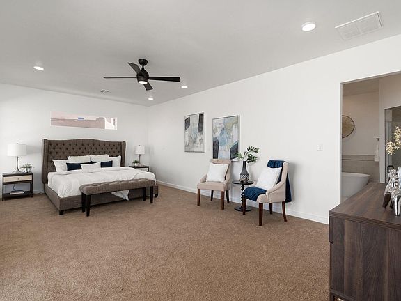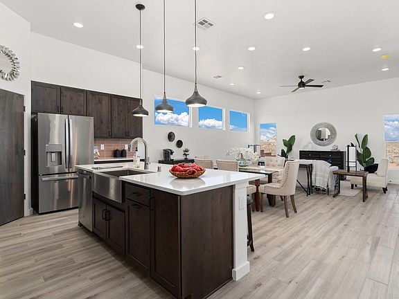 New Fellowship Home - 4 beds - 3 baths - 3 car garage - in Rio Rancho on 1.25 Acres!! Come tour this Modern Ranch that's not only chic but also upscale! Stylish cabinetry paired with quartz countertop & copper backsplash creates for a welcoming & classy space! Culinary enthusiasts will love the open kitchen with island for entertaining! Coffee or wine bar right off kitchen perfect for at home study. Bright living & dining space illuminated by natural light, bedrooms carpeted for comfort, & the HUGE primary bedroom boasts large walk-in closet, upscale shower, tub, double sinks in the ensuite bathroom. But wait there's more, this home offers a flex-suite with full kitchenette & a private entrance! This is your second living space, guest suite or at home office! Come see today!