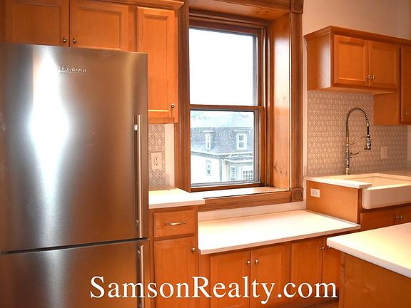 Sunny renovated Victorian with the charm of old details and the elegance of upgrades. Beautiful hardwoods throughout. High Ceilings. Beautiful chandeliers. Living area with turret. Updated kitchen with stainless steel fridge, stove, microwave, and dishwasher. Sink has a long-neck faucet with sprayer. Coin laundry in the basement. Includes heat and hot water. Parking for 2 cars. Available for 6/1/2025