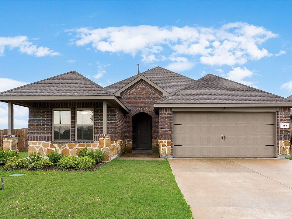 This beautiful 4-bedroom, 2-bathroom home boasts a thoughtfully designed split layout, charming front porch with lakeviews, and only one neighboring home. The kitchen featuring a spacious island, an abundance of cabinet's, stainless steel appliances, including a range and dishwasher, along with quartz countertops. The expansive primary suite offers a serene retreat with a luxurious en-suite bath, a walk-in shower, and a generous walk-in closet. Located across from commumity lake and within walking distance to the new elementary school and community park. BUYERS AND BUYERS AGENT TO VERIFY ALL INFORMATION CONTAINED WITHIN.