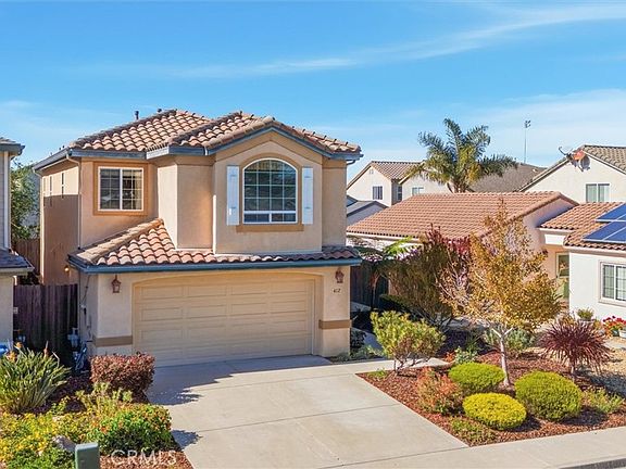 Enjoy the best of Arroyo Grande living! This gorgeous turnkey home sits in a highly desirable west-side neighborhood, just a short walk to Soto Sports Complex and only two miles from Pismo Beach access. Step inside to a bright, welcoming living room with tall ceilings and abundant natural light. The open-concept floor plan connects the living, dining, and kitchen areas ; perfect for entertaining or everyday comfort. The kitchen features a peninsula with bar seating, upgraded appliances, and plenty of storage. Enjoy the Central Coast’s ideal climate with seamless indoor-outdoor living. From the great room, step into a beautifully landscaped backyard with lawn and interlocking pavers; ideal for barbecuing, relaxing, or spending time with family and friends. Downstairs also includes a guest bath, coat closet, laundry room, pantry, and direct access to the attached two-car garage. Upstairs, the primary suite offers a spacious walk-in closet and en-suite bath, while two additional bedrooms enjoy beautiful east-facing mountain views and share a full hallway bath. A generous landing and linen closet provide extra space and convenience. Experience the charm, comfort, and coastal lifestyle that make Arroyo Grande one of the most sought-after places to call home.