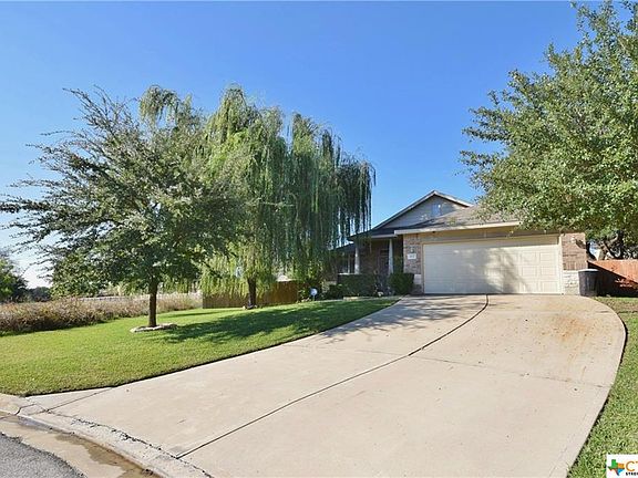 Beautifully landscaped home on huge .37-acre cul-de-sac lot with amazing back yard! To the left of the entryway is the formal dining, with vaulted ceiling and wood laminate flooring. Large family room boasts fireplace with wood mantle. Family room is open to the kitchen, which includes breakfast bar and pantry. Stainless appliances include smoothtop stove, dishwasher, refrigerator, and microwave. Breakfast nook features chandelier and door to back patio. Master bedroom includes recessed ceiling and large walk-in closet. Master bath has dual sinks, jetted garden tub and separate walk-in shower. Plus three more bedrooms and a bathroom with tub/shower combo. Huge parklike back yard includes covered patio, pergola and storage shed. No neighbors on the left and trees along the back add privacy. Additional features include surround sound wiring, fence, sprinklers, and alarm. Convenient to shopping and restaurants. Schools are Mountain View Elem, Union Grove Middle and Harker Heights High!