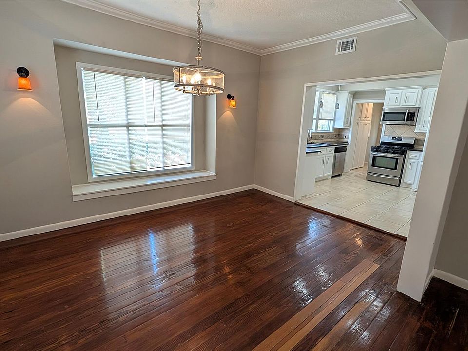 Heights area cottage style 3 bed / 2 bath house in Brooke Smith neighborhood.. Hardwood floors. Nicely appointed white kitchen with granite counters. W/D included in detached laundry room. Lots of trees, and 2 spaces in detached carport. Easy access 45 and Downtown. Small 1/1 garage apartment leases separately in the rear. Separate entrance.