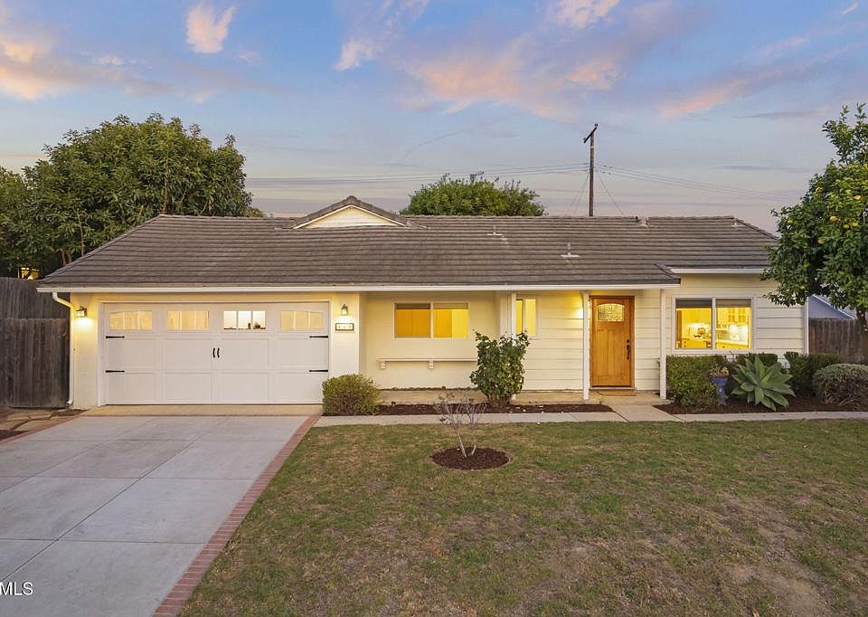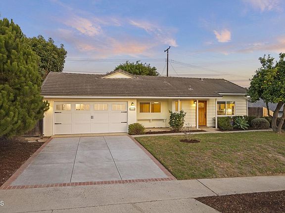 Perfectly positioned in one of Ventura's most desirable neighborhoods near Arroyo Verde Park, this beautifully updated single-story home blends elevated design with effortless everyday living. Designed with comfort and style in mind, this 4-bedroom, 2-bath home offers a bright, open layout enhanced by vaulted ceilings with a striking wood beam, recessed lighting, and rich hardwood floors throughout. The light-filled living room features a cozy brick fireplace and effortless flow into the dining area and kitchen, perfect for everyday living and entertaining. The kitchen is appointed with quartz countertops, beadboard cabinetry, pendant lighting, a stunning blue tile backsplash, stainless steel appliances, and a center island. All four bedrooms are well-sized, offering flexibility for a home office, guest room, or growing household needs. Both bathrooms are bright and clean with tasteful finishes. Step outside to an expansive backyard with mature avocado and citrus trees, lush landscaping, and plenty of space to garden, entertain, or simply enjoy Ventura's coastal weather. The covered patio creates a relaxing outdoor living area, and the extra-large yard offers endless possibilities. Located on a quiet, well-kept street close to hiking trails, Ventura College, restaurants, shopping, and the natural beauty the city is known for, this home blends extensive upgrades with charm, comfort, and an ideal Ventura lifestyle.