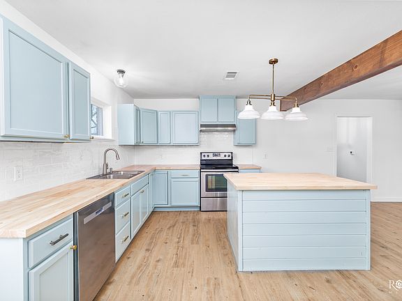Completely remodeled kitchenSprawling half-acre lotFresh paintBrand new laminate floorsStainless steel appliancesLarge windowsButcher block countertops