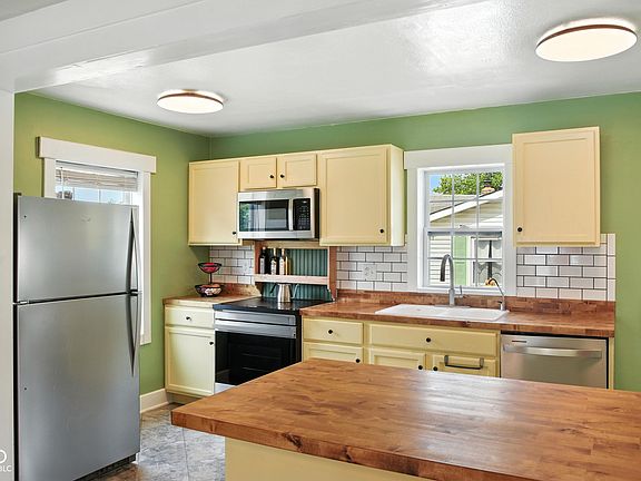 Welcome to this picture perfect cottage in the heart of Brownsburg! This 2bedroom, 1bath home blends classic character with thoughtful updates, offering a warm and inviting space inside and out. Step onto the charming front porch and into a light filled interior featuring hardwood floors, arched doorways, and custom touches throughout. The bright kitchen boasts butcher block countertops, subway tile backsplash, stainless steel appliances, and a spacious breakfast bar that opens to the dining area-perfect for everyday living or entertaining guests. The main level hosts two cozy bedrooms and an updated full bath with stylish tile work. A finished lower level provides flexible space for a home office, rec room, or hobby area. Outside, enjoy a fully fenced front yard, a long gravel drive, and a detached 2car garage. The backyard is ready for summer evenings with green space, mature trees, and room to play or garden. All this within walking distance to downtown Brownsburg's shops, dining, and parks, with quick access to major routes and top rated schools. Don't miss your chance to make this charming home yours!