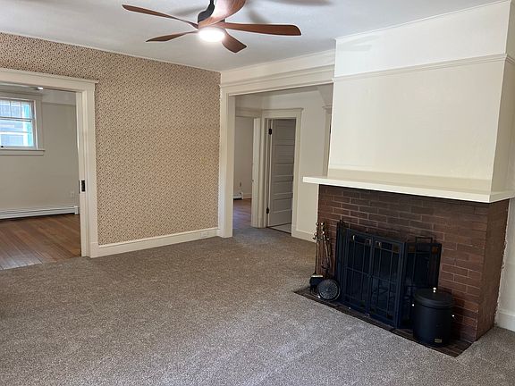 The main level has 2 bedrooms with wood floors, one having a walk-in closet with window and gorgeous large pocket door. The full bathroom on the main level has a clawfoot tub/shower and turn of the century charm. Beautiful new luxury vinyl plank in the eat-in kitchen (as well as brand new stainless steal refrigerator.) The main family room boasts a fireplace to make a nice addition for cozy winter nights. A sunroom off the main room provides nice additional space for sun-catching, relaxing, studying or entertaining a guest. All new light fixtures in entire house with new ceiling fans in all bedrooms. New Trex deck for front porch!