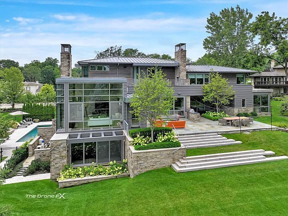 Behind the gates of prestigious Hunter Trails, on a private cul-de-sac, stands a rare architectural masterpiece on a wooded lot that is just over an acre. Inspired with a whisper of Frank Lloyd Wright yet designed for today's modern luxury lifestyle, this estate blends wood, stone, glass, and steel into more than 10,000 square feet of extraordinary living space. With five bedrooms, six full baths, and three powder rooms, the residence is a showcase of light, flow, and fine detail-all set on a lush, entertainer's one-acre lot with a pool, spa, and multiple outdoor living areas. From the moment you step through the custom glass-paneled front door, you'll discover artistry at every turn: soaring walls of windows framing nature, sculptural wood and stone accents, rich and brand new European white oak floors, and designer lighting throughout. The gourmet kitchen rivals new construction with new Gabana Quartzite slabs, warm custom cabinetry that was newly installed, professional appliances, and an iconic triple-width hood that doubles as art. The open plan flows seamlessly into a breakfast nook and family room with its own stone-clad fireplace, while the formal dining and living rooms capture wooded views through dramatic walls of glass. A main-level guest suite and two flexible rooms add to the versatility. Upstairs, the primary suite redefines luxury living with three walk-in closets and a spa bath, while two additional ensuite bedrooms and a laundry room complete the level. The walkout lower level is designed for entertainment: a recreation room with wet bar, media room, mirrored exercise studio overlooking the pool, tasting room with a view into the wine cellar that awaits your finishing touches, plus a full guest suite. Direct access leads to the resort-like backyard with pool, spa, and covered patio-perfect for gatherings or quiet escapes. What makes this home truly exceptional, however, is the value. Recently renovated with a brand-new kitchen and flooring, this estate feels practically new-and to recreate a home of this caliber today would require a truly significant investment than the current asking price. Its architectural style is virtually unmatched in Oak Brook, making it ideal for the discerning buyer who demands both rarity and refinement. Adding to its appeal, this residence is located in one of Oak Brook's most coveted gated communities, complete with a 24/7 manned guard house for ultimate peace of mind. Residents enjoy proximity to some of the area's finest dining, acclaimed golf courses, and the world-renowned Oakbrook Center Mall, offering an unmatched selection of luxury shopping and experiences-all while being just minutes from major transportation corridors and downtown Chicago access. With unmatched craftsmanship, an irreplaceable design, and every amenity imaginable, this is more than a home-it's a legacy. Don't miss the chance to make it yours.