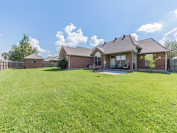 This well maintained 3 bed 2 bath home sits in a large lot in a quiet neighborhood with lovely design details. This spacious home also includes an office that could be a 4th bedroom. The living area is bright and open with a mantled faux fireplace centering the room. The kitchen is spacious with granite countertops custom cabinets and a cathedral ceiling that draws you into the adjacent dining area. The master suite features wood floor, cathedral ceiling, dual vanities, separate shower and tub, and walk-in closet. The additional bedrooms are roomy and a separate utility room makes for a convenient use of space. This home also features office space. The backyard is a retreat with an extended patio perfect for entertaining friends and family with a storage shed as well. Preferred lender to offer $2000 in closing costs. Benoit Rd leading to the house recently paved! Home never flooded and flood insurance will not be required.