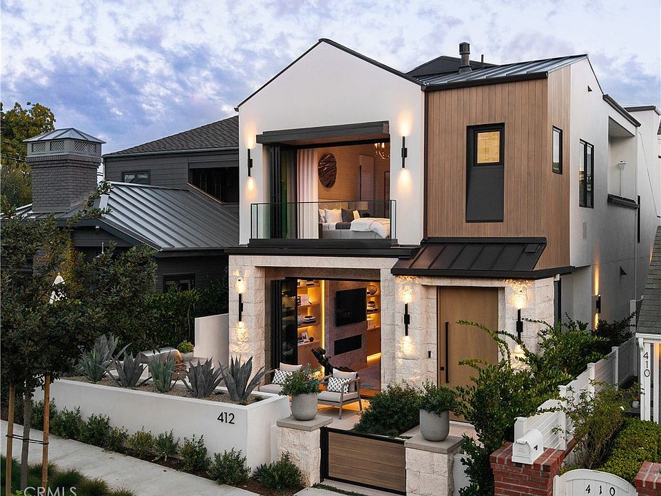 412 Heliotrope is a FULL SINGLE FAMILY HOME ground up new construction built by Grewal Development, and crafted by architect Mark Teale, which was brought to life by the award-winning Sage Design Studio! This 4-bedroom, 6-bathroom residence spans 3,120 square feet of refined interiors, plus 650 square feet of seamless indoor-outdoor living space between the front firepit entry to the interior courtyard that features built-in heaters and a custom waterwall. Inside, European white oak floors run throughout, while sunlit living areas are elevated by rich details—like the Limestone fireplace flanked by custom oak bookshelves with integrated LED lighting. A custom stained Hemlock tongue-and-groove ceiling adds subtle texture and warmth throughout the home, both indoors and out. At the center, a showstopping kitchen with fully equipped top-of-the-line Wolf appliances and a dramatic natural stone island. The primary suite offers a serene haven, with bi-folding doors to a private balcony, a Kelly Wearstler chandelier, and a see-through wall mounted fireplace that opens to a spa-worthy bath wrapped in King White marble. A private elevator connects all three levels, leading to a rooftop retreat with a 750-square-foot rooftop deck with panoramic views, wet bar, hot tub, and fire pit! Every inch of this home is curated—from sleek Caesarstone baths and mosaic tilework, to a laundry room finished in Japanese Yukon tile—bringing thoughtful luxury to coastal living. Minutes away from all of the village shops and restaurants, and a short distance to Corona del Mar State Beach!