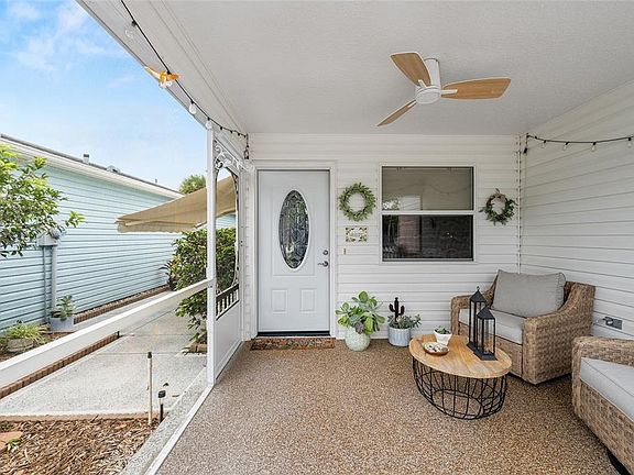 HEART OF THE VILLAGES! Nestled in the highly desirable Village of De La Vista West, this home offers unbeatable convenience just minutes from Spanish Springs, Lake Sumter Landing, Tierra Del Sol Country Club, and the Chula Vista Recreation Center. Live the lifestyle you’ve been dreaming of with golf, dining, shopping, recreation, and entertainment all right at your doorstep! 5 MINUTE DRIVE TO SPANISH SPRINGS & 1.2 MILES TO LAKE SUMTER TOWN SQUARES! **BOND PAID, NEW HOT WATER HEATER 2025, SELLER COMPLETED HOME INSPECTION SEPT 25TH, 2025 REPORT AVAILABLE UPON REQUEST** Welcome to this adorable 2-bedroom, 2-bath Colony Patio Villa! Mature and well-manicured landscaping, painted driveway and walkway, RIVER ROCK FRONT SCREEN LANAI, and side patio with an awning. DECORATIVE GLASS FRONT DOOR. LAMINATE FLOORING throughout the main living areas. The kitchen boasts NEW LIGHTING, FAUCET, SINK, TILED BACKSPLASH, AND PANTRY CLOSET. The master boasts a WALK-IN CLOSET, BEAUTIFUL TOTALLY REVAMPED FLOOR TO CEILING BATHROOM w/ TILED WALK-IN SHOWER WITH SEAMLESS GLASS DOOR, CUSTOM VANITY AND STORAGE CABINET, NEW VANITY, LIGHTING, FAUCET, AND SINK. The guest bedroom is a good size, and the guest BATH HAS BEEN RECENTLY updated/ NEW FLLORING, FIXTURES, VANITY, AND LIGHTING. The garage has plenty of room for your car and cart. The roof was replaced in 2012, A/C 2010. Furniture and or Turn-key Package is available separately. Golf enthusiasts will love the convenience of nearby championship and executive golf courses, while the Tierra Del Sol Country Club & Restaurant offers golf, tennis, and a beautiful dining experience. The Chula Vista Recreation Center is also just around the corner, featuring swimming, pickleball, tennis, and a variety of recreational activities. Everyday living is a breeze with medical facilities, grocery stores, and local conveniences all nearby. The Village of De La Vista West truly combines a prime central location with access to some of the best amenities in The Villages, making it one of the most sought-after neighborhoods!