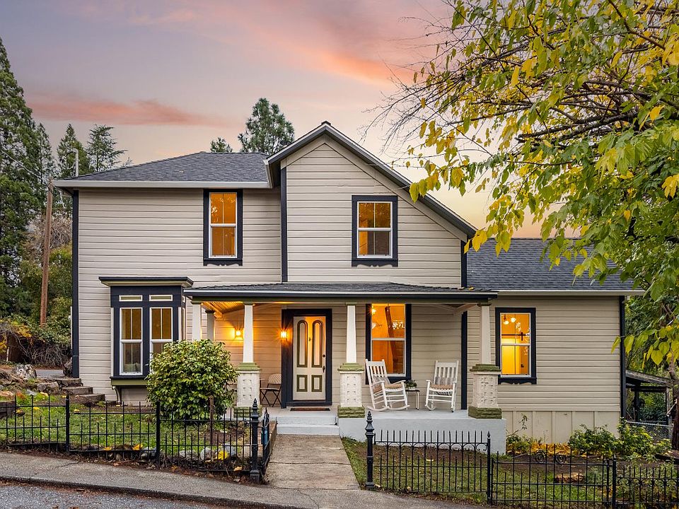Just steps from historic Downtown Grass Valley and the Mill St Plaza, this stunningly remodeled Victorian blends timeless charm with modern comfort. The main home features 4 bedrooms & 2.5 baths, including a spacious primary suite on the main level with an impressive bathroom & dual walk in closets closets. The gorgeous new kitchen showcases concrete countertops, brand new custom cabinetry and new LVP flooring that flows throughout the living spaces. Upstairs, you'll find three additional bedrooms with new carpet & abundant natural light...as well as a newly remodeled full bathroom. Sweet backyard with attached greenhouse, patio, deck and two off street parking spaces. An 840 sq ft (not included in the main home sq footage) detached full studio with its own kitchen & full bath offers endless possibilities...ideal for guests, multi-generational living/game room/office or rental income. Enjoy the convenience of walking to shops, dining & all the vibrant amenities of downtown Grass Valley while savoring the character and style of this beautifully updated home.
