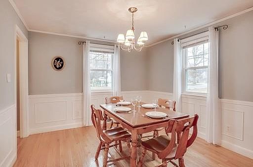 Is there anything prettier than a classic cape? This sunny home is located in a super convenient spot and has great updates and features! We love the updated white kitchen, with access to the adjacent sunroom, which is the perfect place to enjoy your morning coffee! The dining room features a lovely built-in cabinet, and the living room provides a wood-burning fireplace. Rounding out the first floor is a desirable bedroom and full bathroom, offering one floor living for those that need it. Upstairs you'll be pleased to find an additional full bathroom and 2 spacious front to back bedrooms. Hardwood floors are throughout this home! Important updates include newer roof, windows, 4 year old gas heat, newer back deck, and more. There is also central air conditioning - yay! and a garage! Move right in and enjoy all of the nearby shopping, restaurants and great easy access to Rt 3 for commute and also down the road are some of the areas finest restaurants in nearby Burlington. Welcome home!