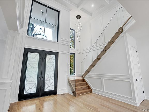 Welcome to 412 Mill River Rd. This brand new luxury estate sits on 1.26 fully fenced acres and offers approximately 6,350 sq. ft. of finished living space, plus a finished walkout lower level. Designed with 10 ft ceilings, custom millwork, and high-end finishes throughout. The chef’s kitchen features a quartz waterfall island, Wolf appliances, and an oversized Thermador refrigerator & freezer, with a wet bar leading to the formal dining room. Main level includes a junior primary suite, private office, mudroom, and 3-car epoxy garage.